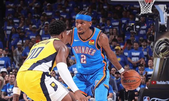 首次闯进总决赛,亚历山大就光芒四射,对步行者的G1他砍下38分5篮板3助攻3抢断,G2又轰出34分5篮板8助攻4抢断,攻防一体的同时,还打破多项纪录。他成为NBA历史上,前两场总决赛得分最高的球员(72分),比肩东契奇,成为历史第二位总决赛前两场得分30+的控球后卫,成为历史第四位,总决赛连续砍下30分3抢断的球员。另外,今年季后赛,亚历山大已经11次单场得到30分5助攻,和詹姆斯、乔丹并列历史第一。38分+34分!历史首人,这就是他能拿4年3亿顶薪美金的原因,这里就不得不提到当年雷霆那笔交易。