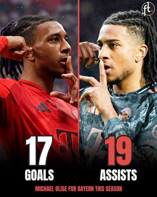 奥利塞去年夏天加盟拜仁,本赛季他表现出色,已经打进17球送出19次助攻。